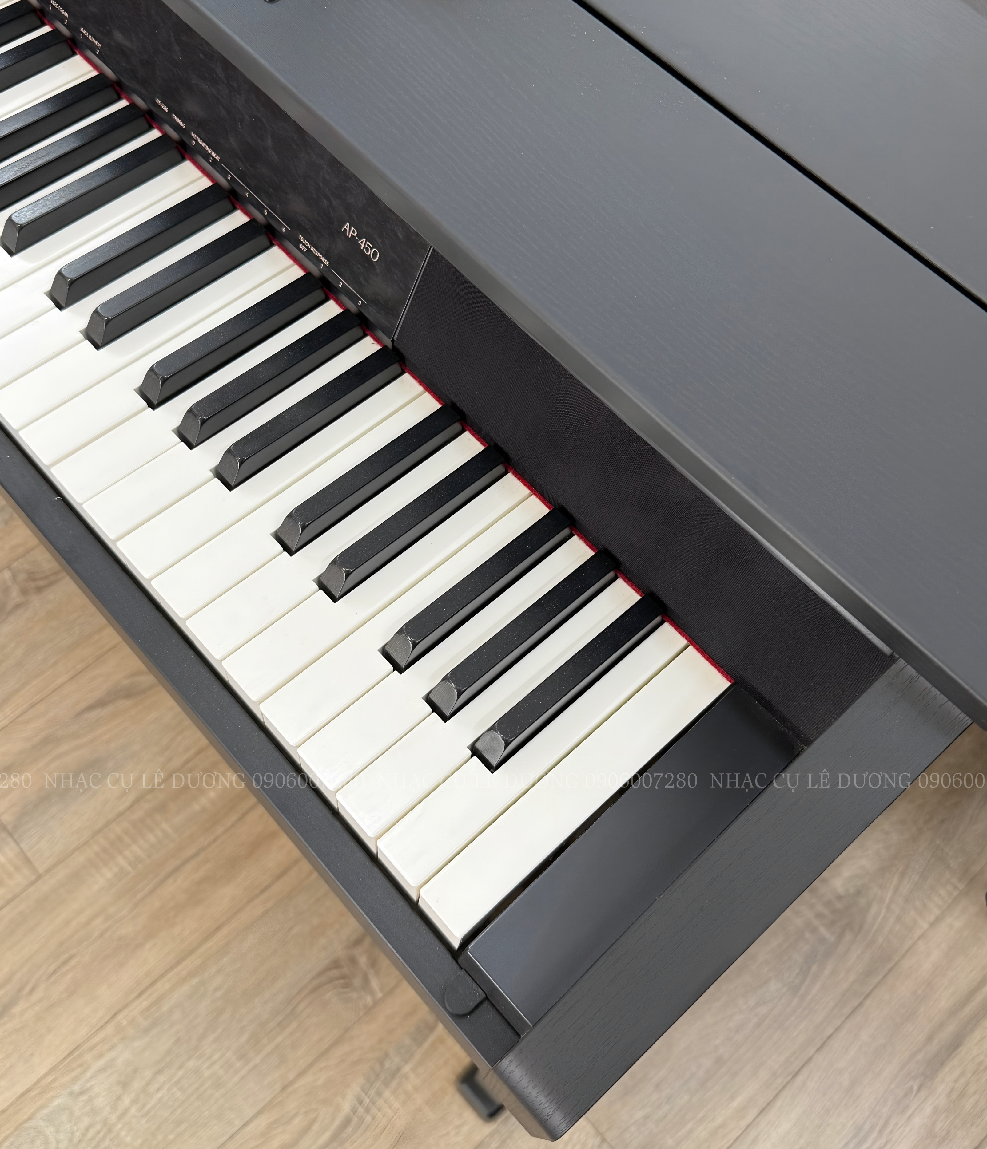 Các phím đàn trên Casio AP450 mô phỏng gỗ mun và ngà voi mang lại cảm giác và kết cấu sang trọng cũng như cảm giác chạm mượt mà của bàn phím đại dương cầm. Bề mặt uốn cong chi tiết tỉ mỉ ngăn ngừa ngón tay trượt do mồ hôi và mang lại cảm giác vừa vặn hoàn hảo với đầu ngón tay, ngay cả khi chơi trong thời gian dài.